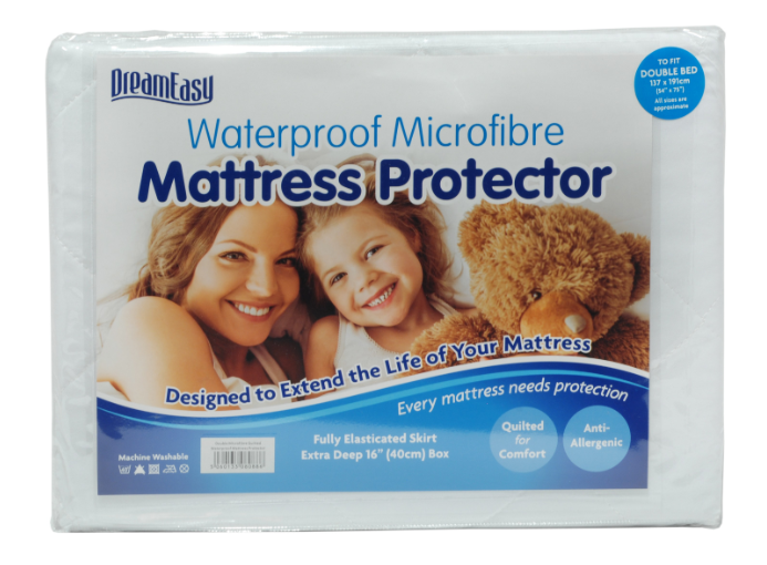 Introducing the DreamEasy Waterproof Microfibre Mattress Protector, expertly designed with 100% waterproof technology to prevent any spills or accidents from reaching your mattress. Protects against dust, mold, and bacteria for a clean and comfortable sleep. Wake up refreshed and well-rested every morning.